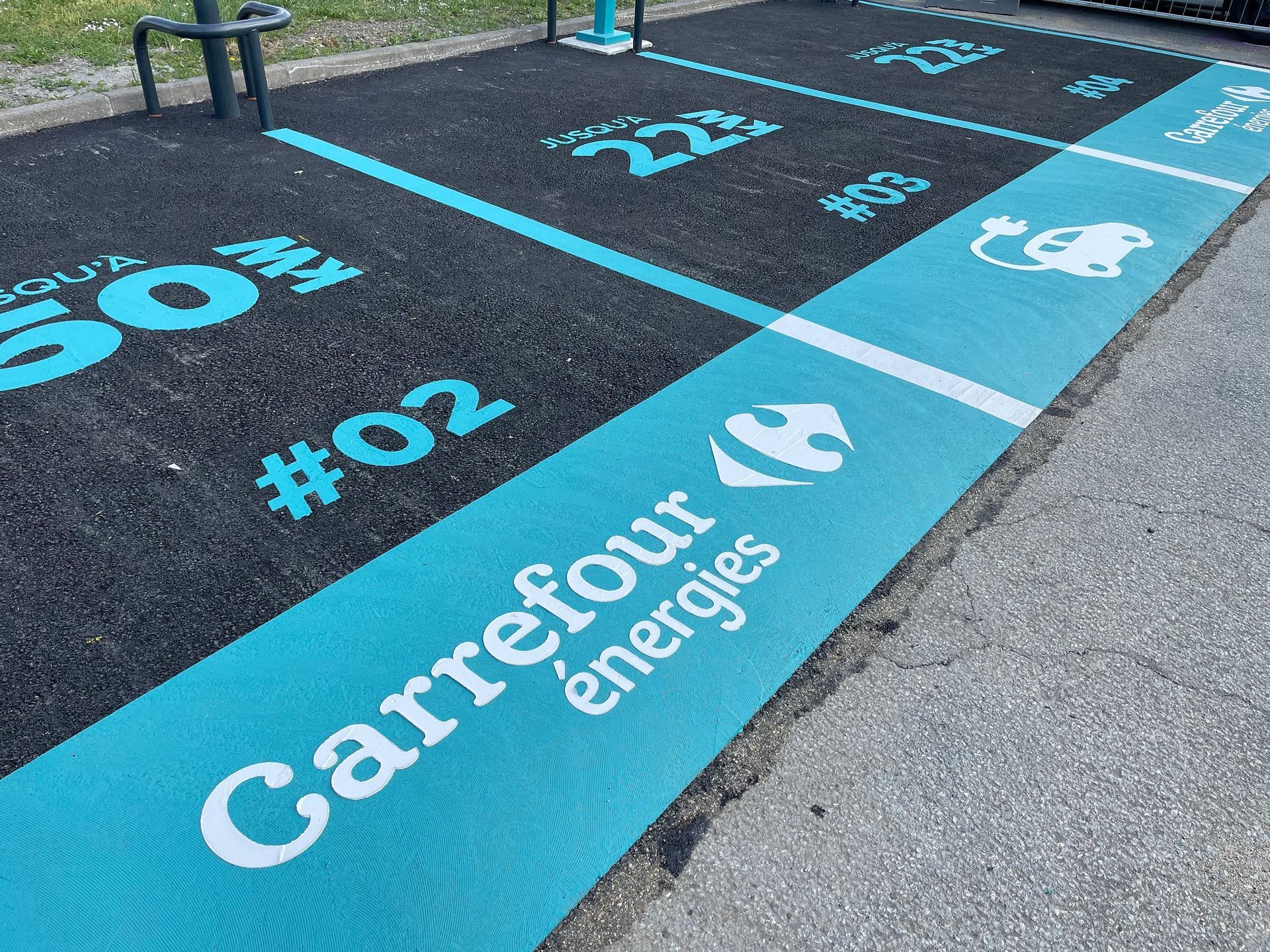Places IRVE voitures électriques réalisées avec pochoirs sur mesure - Aout 2023