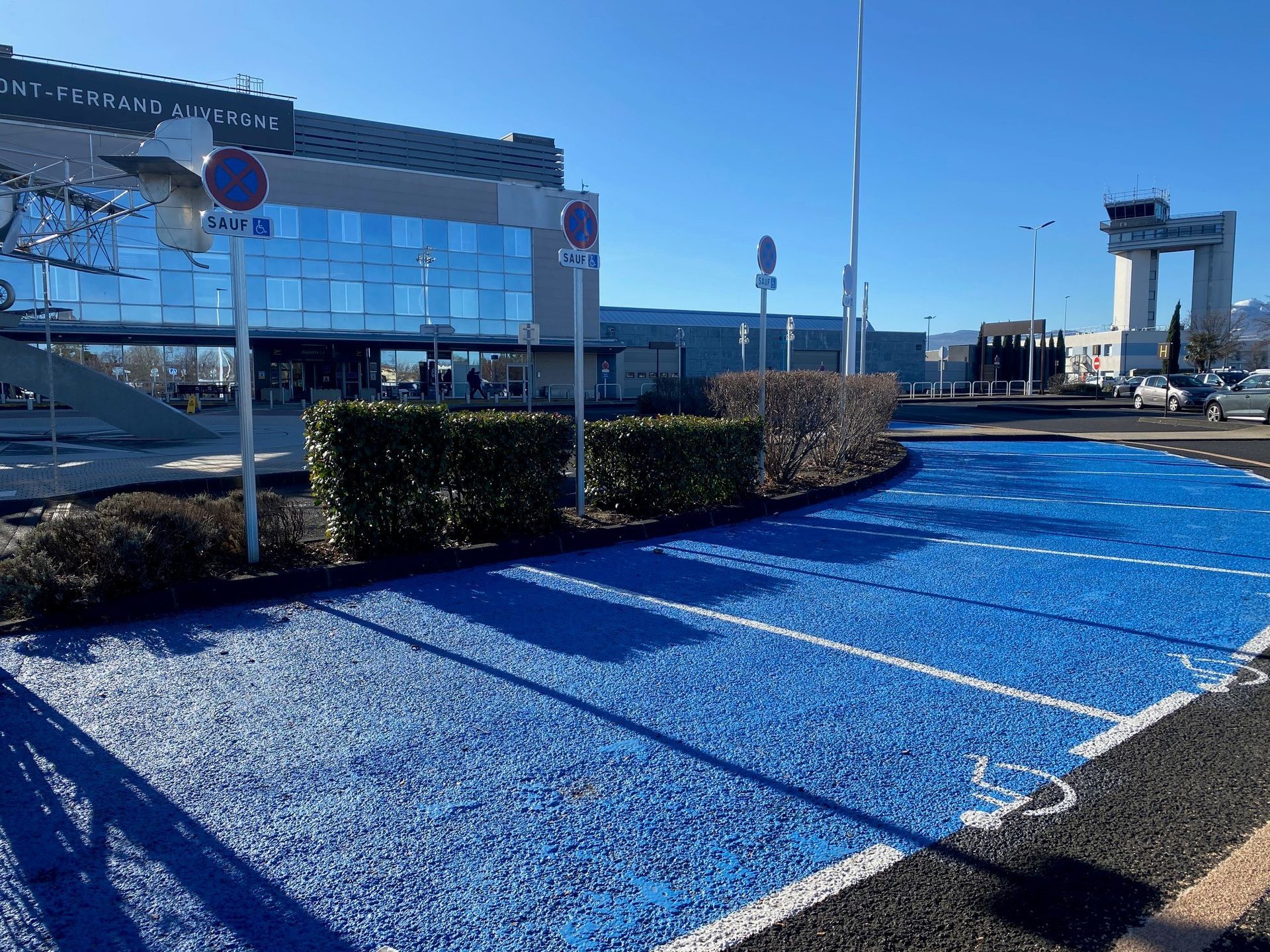 Réalisation accessibilité PMR avec panneaux, places, rail de guidage - Aéroport d'Aulnat - Décembre 2020